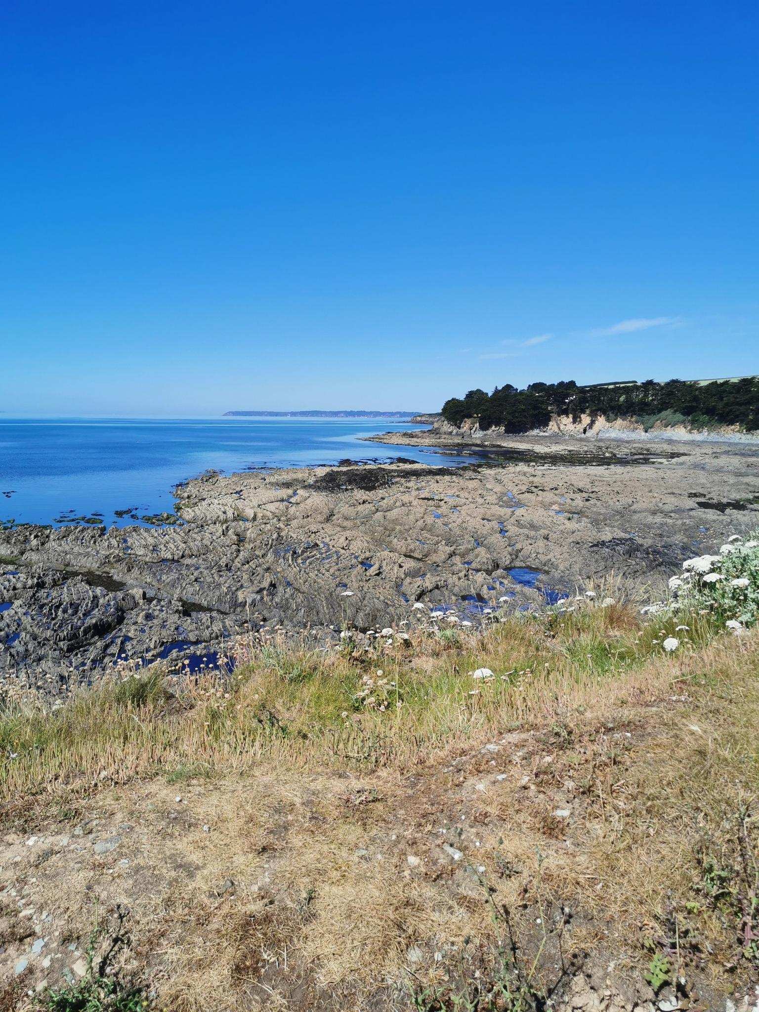 Ici le littoral est très contrasté, présentant dans sa partie sud-est des falaises d'une trentaine de mètres d'altitude, entre la grève de Porslous et la pointe du Bellec.